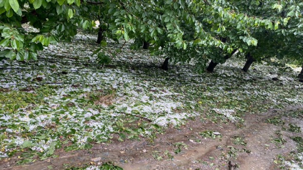 Denizli'nin Honaz ilçesinde de dolu, başta kiraz bahçeleri olmak üzere tarım arazilerine zarar verdi.