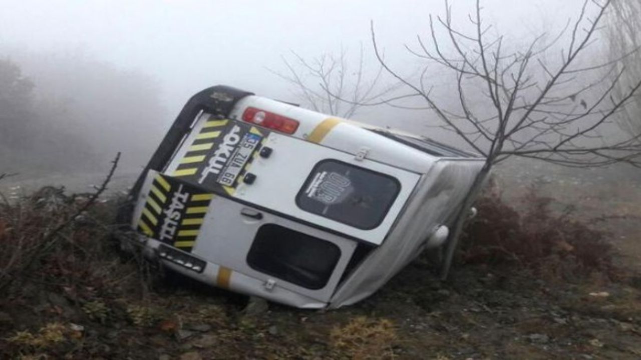 Tire'ye 8 kilometre mesafedeki kırsal Küçükkömürcü Mahallesi'nde yaşayan ve taşımalı sistemle eğitim gören öğrencileri ilçe merkezindeki okullarına götürmek üzere, bugün saat 07.30 sıralarında yola çıkan Hüseyin Kıvrak'ın kullandığı 35 ZUA 66 plakalı servis aracı, gece yağan yağmurun kayganlaştırdığı yolda yoğun siste ilerlerken kontrolden çıktı. Savrulan minibüs şarampole yuvarlandı.