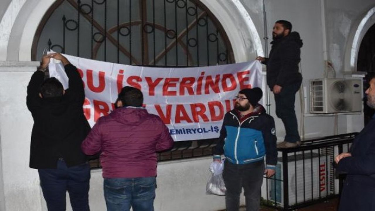 Açıklamanın ardından işçiler, istasyonda bulunan sendika temsilciliği binasında beklemeye başladı. (DHA, Haber Merkezi)