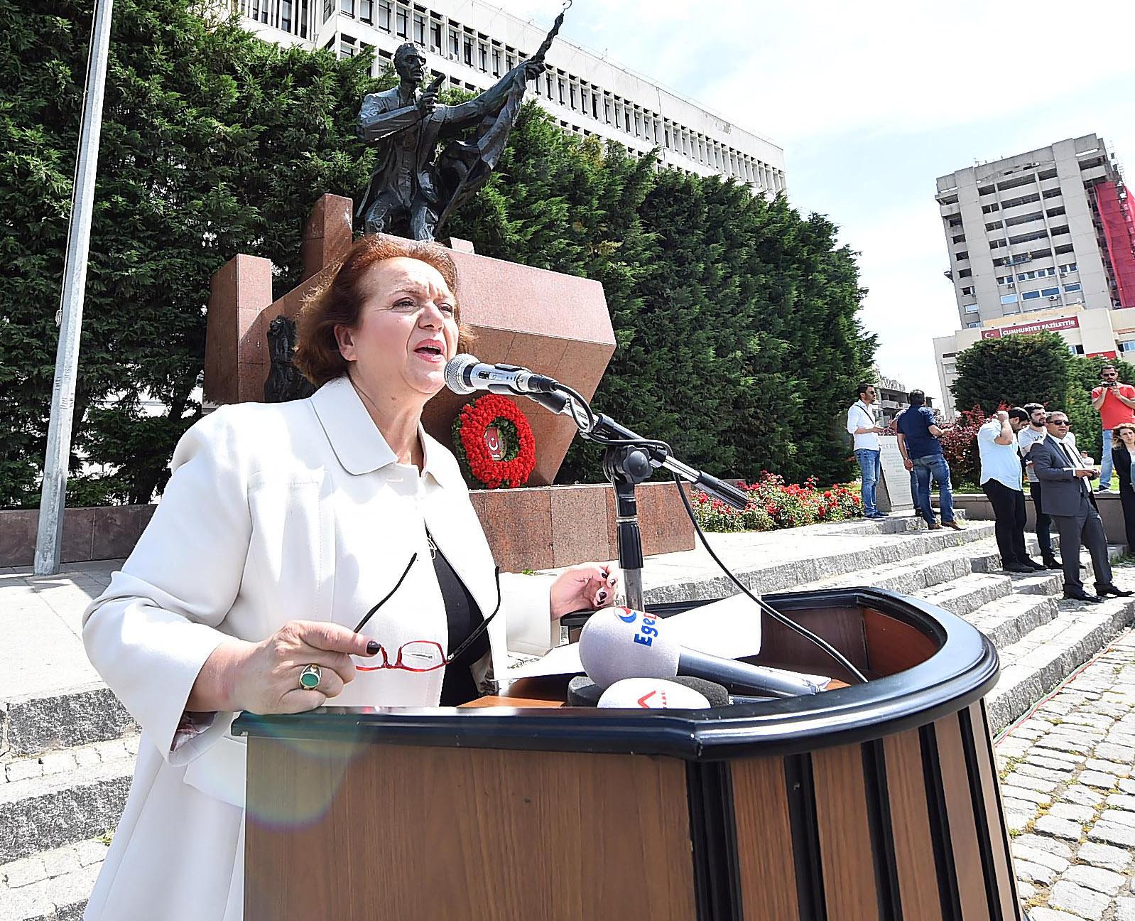 Saygı duruşu ve İstiklal Marşı'nın ardından kürsüye gelen Dikmen, Şehit Gazeteci Hazan Tahsin'in attığı ilk kurşunun Türk ulusunun özgürlük sembolü olduğunu belirterek, 'Aradan neredeyse bir asır geçse de, bu coğrafyada gazetecilik yapmak çok zor. Giderek daha da zorlaşıyor. Ülkemiz adeta gazeteci hapishanesine dönüştürüldü. Dün itibariyle 159 gazeteci parmaklıklar ardında. Yazmaları, konuşmaları engelleniyor. Gazetecilik yapmak bu ülkede suç sayılıyor. Halka gerçekleri söylemek, doğruyu göstermek güç hale geldi. Bizleri işgalden kurtaran Türkiye Cumhuriyeti'nin kurucusu Mustafa Kemal Atatürk'e ağza alınmayacak hakaretler ediliyor ve bunlar yayınlanıyor, yayımlanıyor. Ülkemiz gerçekten çok büyük sıkıntılar içerisinden geçiyor. Bize düşen, bu sorunları yenebilmektir, bir olabilmektir. Tarih bize birlik içerisinde ulus olabilmeyi göstermiştir. Bugün de bu zorlukları birlikte aşacağız. Bizler, Hasan Tahsin ve cumhuriyet ruhunu ilk günkü gibi sürdüreceğiz ve birlikte mücadeleye devam edeceğiz' diye konuştu.