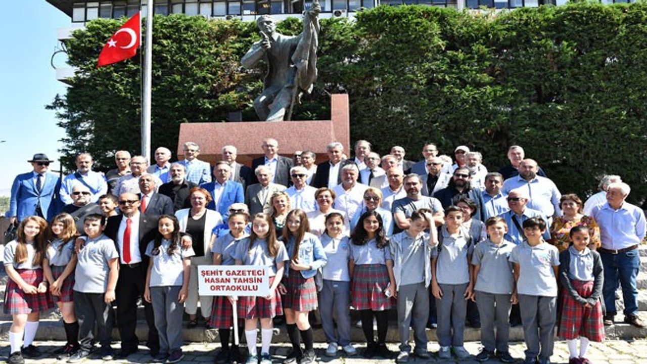 Şehit Gazeteci Hasan Tahsin Ortaokulu öğrencilerinin de hazır bulunduğu tören, İzmir Gazeteciler Cemiyeti Başkanı Misket Dikmen ve Yönetim Kurulu üyelerinin anıta çelenk koymasıyla başladı. Saygı duruşu ve İstiklal Marşı'nın ardından kürsüye gelen Dikmen, Şehit Gazeteci Hazan Tahsin'in attığı ilk kurşunun Türk ulusunun özgürlük sembolü olduğunu belirterek, 'Aradan neredeyse bir asır geçse de, bu coğrafyada gazetecilik yapmak çok zor. Giderek daha da zorlaşıyor. Atılan o ilk kurşun, Anadolu'nun bağımsızlığı için ilk adım oldu. İzmir'de başlayan mücadele İzmir'de bitti. Atatürk'ün dediği gibi geldikleri gibi gittiler. Hasan Tahsin, gerçek aydının sadece sözle değil eylemle de halkın yanında olmasına inandığı bir kahramandı. Öncü olmak, gazetecilik yap mak o dönemde de zordu bedel ödemek gerekiyordu, bu dönemde de zor bu dönemde de bedel ödemek gerekiyor. o günden bugüne aynı inanca sahip gazeteci arkadaşlarımız basın özgürlüğüne sıkılan kurşunların hedefi oldu. Halkın haber almasını sağlayan gazeteciler susturulmaya devam ediyor. Bugün de bu zorlukları birlikte aşacağız. Bizler, Hasan Tahsin ve cumhuriyet ruhunu ilk günkü gibi sürdüreceğiz ve birlikte mücadeleye devam edeceğiz' diye konuştu.
