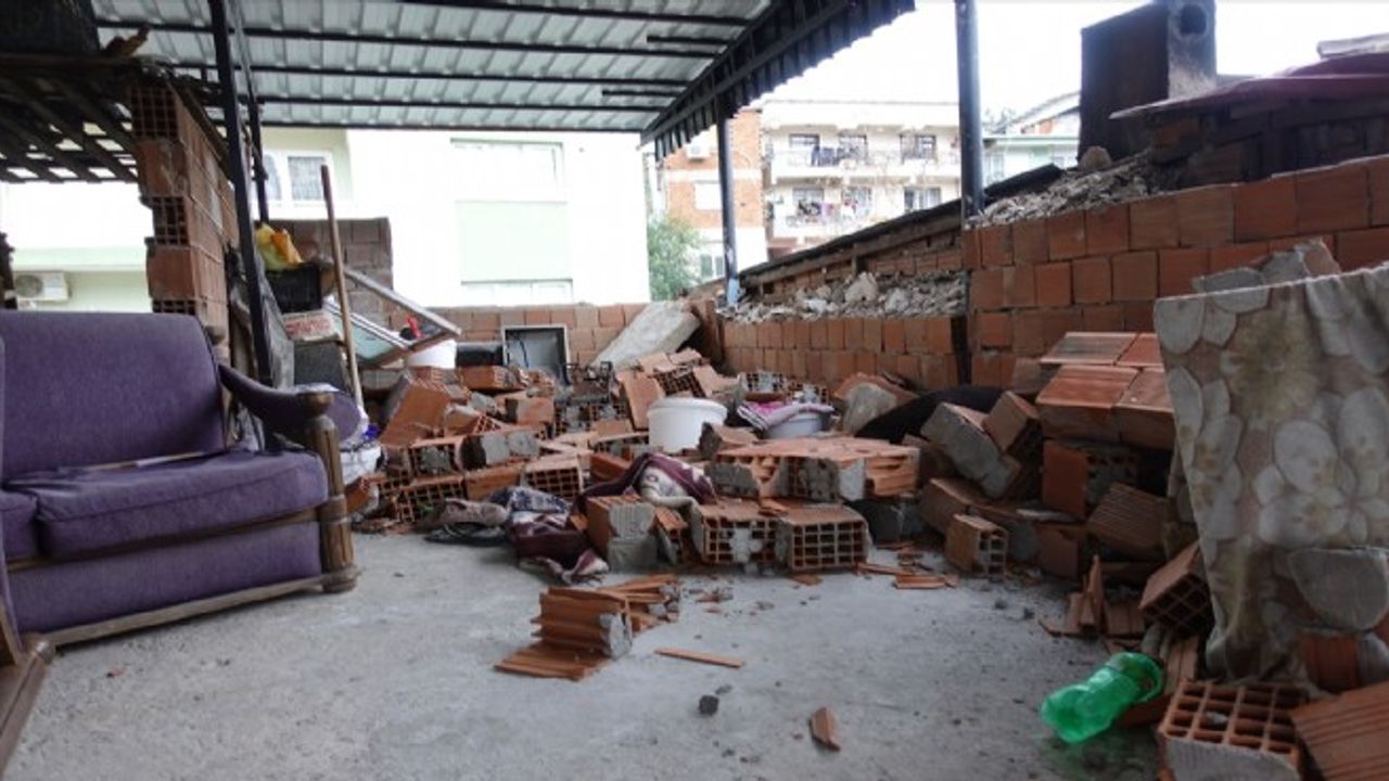 Terasta sac üzerinde ekmek pişiren Halime Yıldırak (45), kızı Rümeysa Yıldırak (19) ve komşuları Gülten İşçi, üzerlerine yıkılan tuğlalar nedeniyle yaralandı.