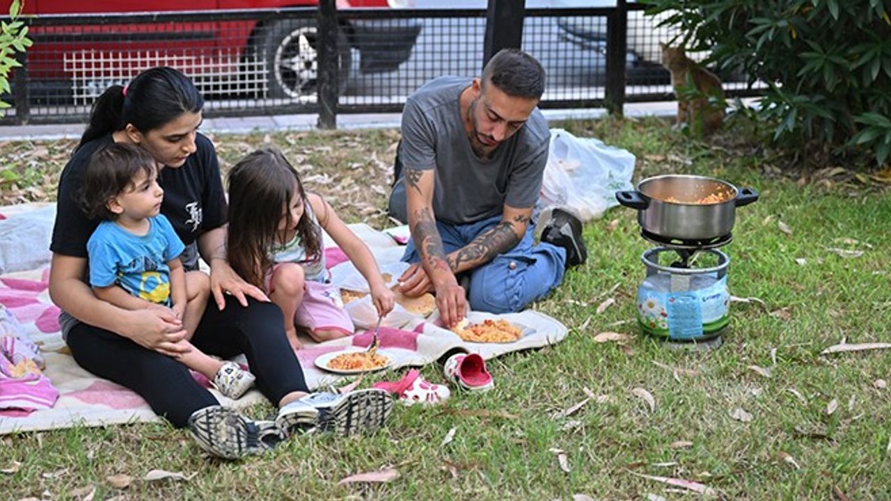 Yemeklerini de küçük tüpleriyle parkta yapan aile, yetkililerden kendi bütçelerine uygun bir ev ve iş istiyor.