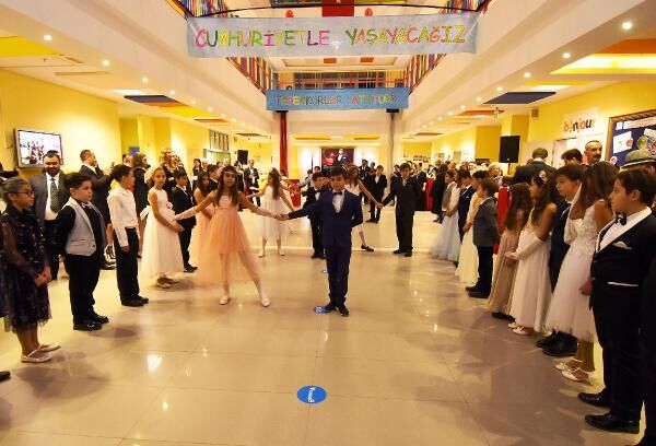 Okul Müdürü Sabrina Ataseven, bir öğretmen olarak öğrencilerine o dönemi yaşatmak istediklerini söyleyip, 'Çünkü sonuçta siz bilgiyi verirsiniz, çocuk sınavda bu bilgiyle başarılı olur, ancak eğer o dönemi yaşatırsanız asıl kazanımı o zaman elde edersiniz. Biz de bu düşünceden yola çıktık. 'Eğer Ulu Önder bizimle bir baloya katılsaydı ne olurdu, kimleri çağırmak isterdi?' diye düşündük ve yaklaşık iki yıl önce bu proje üzerinde çalışmaya başladık. Velilerimiz de bu fikre çok sıcak yaklaştılar. Çocuklar bütün yaz boyunca canlandıracakları kişi ile ilgili olarak araştırma yaptı. O kişilerin değişik yönlerini öğrendi. Okulların açılması ile birlikte projemiz daha da hızlandı ve çocuklar haftada iki prova yaparak vals yapmayı zeybek oynamayı öğrendi' dedi. (DHA)