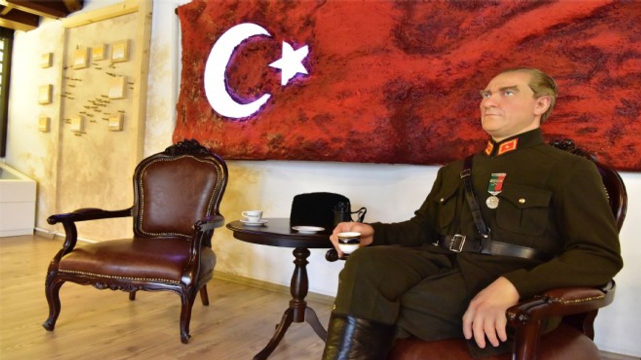 Mustafa Kemal Atatürk'ün Türk Kahvesi içerken canlandırıldığı heykel, Ata Anı Evi'ne özel bir düzenlemeyle yerleştirildi. Ulu Önder Mustafa Kemal Atatürk'ün 9 Eylül 1922'de Belkahve'de, Ata Anı Evi'nin bulunduğu yerde Türk Kahvesi içmesinden yola çıkılarak, Atatürk Heykeli'nin yanına, ziyaretçilerin oturup fotoğraf çektirebilmesi için boş bir koltuk konuldu. Heykelin bulunduğu alan, Ata Anı Evi'nin en özel köşelerinden biri haline geldi.