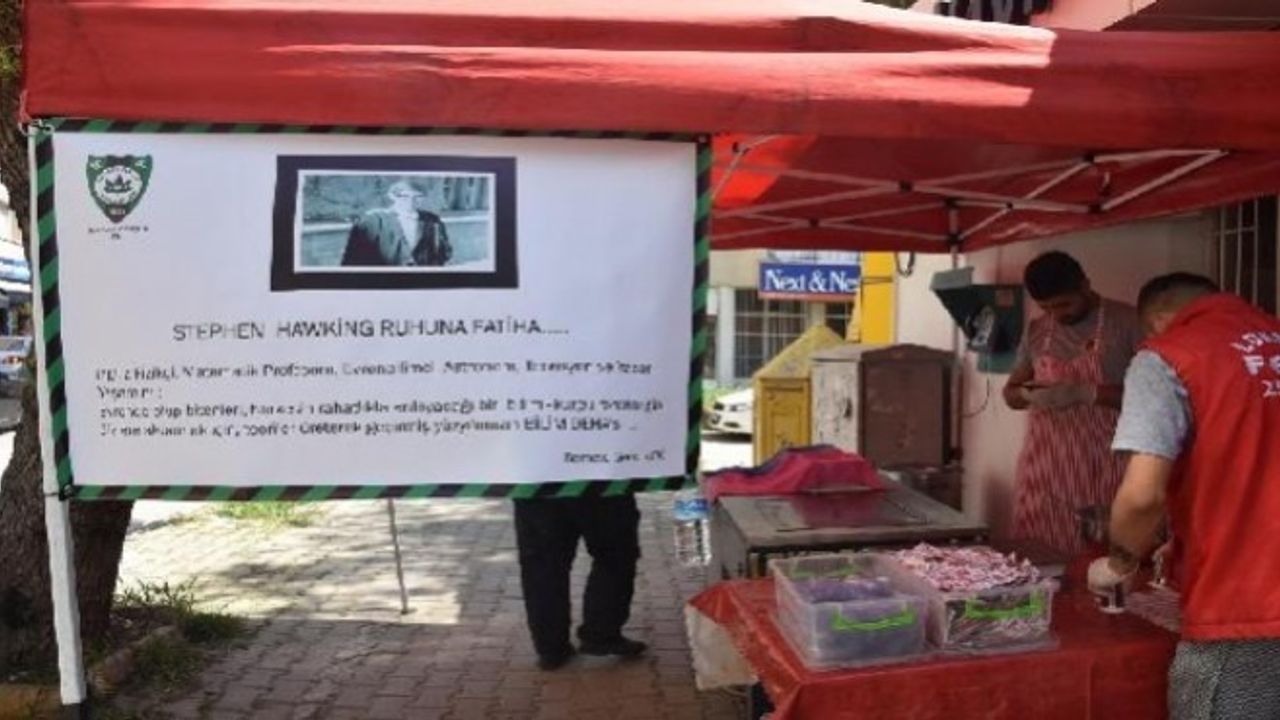 20'li yaşlarındayken Amyotrofik Lateral Skleroz (ALS) hastalığına yakalanan ve kendisi için özel olarak geliştirilen bir bilgisayar sayesinde yaşamının son günlerine dek bilime katkılarını sürdüren Stephen Hawking için helva dağıtıldı. Helva yapılan standın arkasına 'Stephen Hawking ruhuna Fatiha' yazılı afiş asıldı.