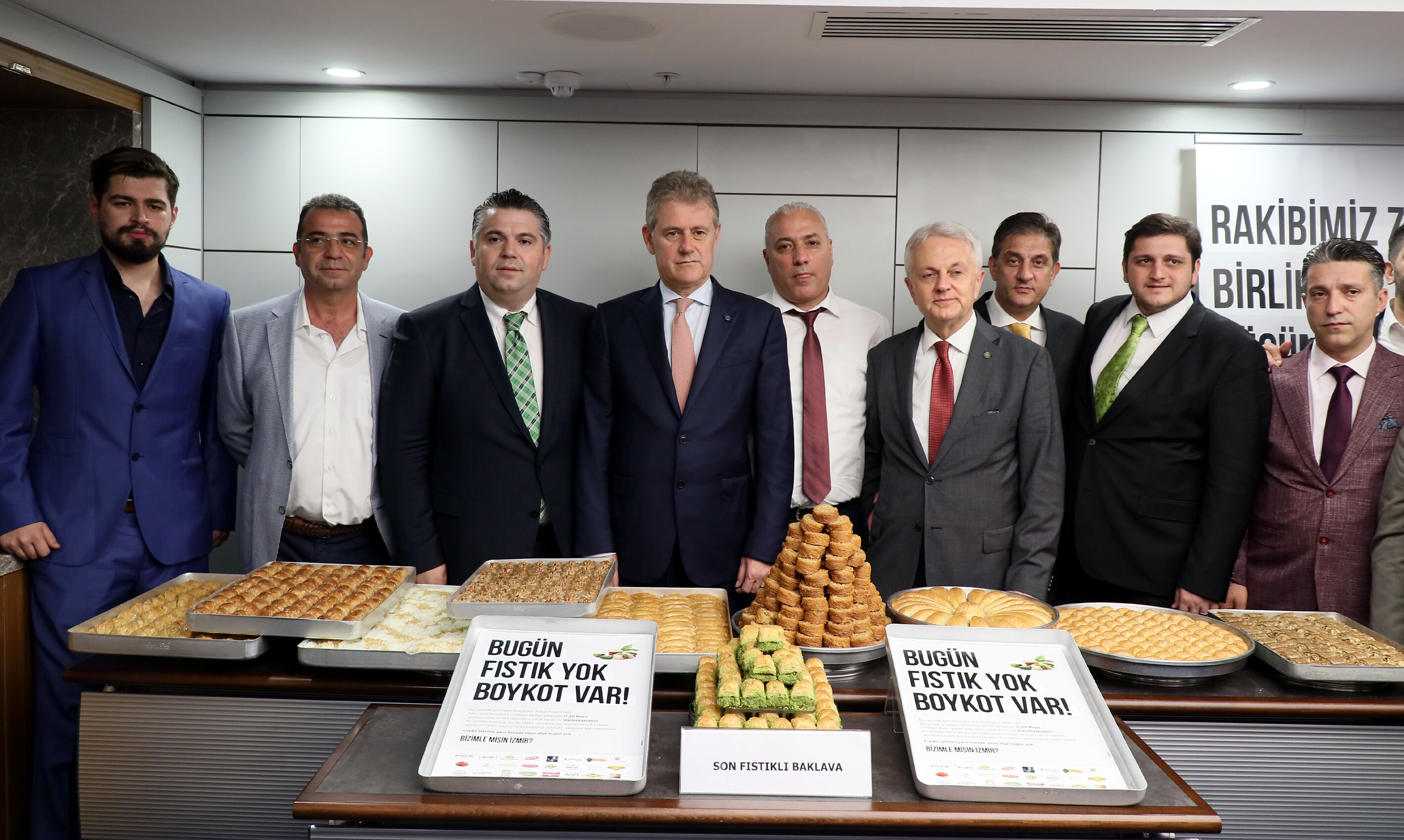 'Biz İzmirli tatlıcılar olarak, Antep fıstığı fiyatlarındaki bu anlamsız artışı ürünlerimize yansıtarak müşterilerimiz karşısında zor durumda kalmaktansa fıstıklı baklava üretimini durdurma kararı almış bulunmaktayız. Bu kararımız 17-20 Mayıs'ta 400 satış noktasında uygulanacak ve istisnasız olarak fıstıklı baklava satılmayacaktır.'