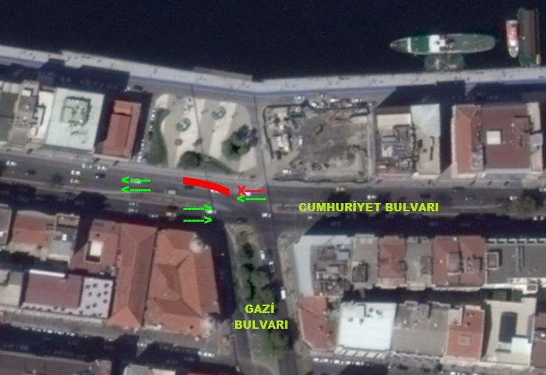 Cumhuriyet Bulvarı üzerinde Gazi Bulvarı dönüşü için hazırlanan'Trafik Düzenleme Projesi' kapsamında yapılacak ray bağlantı çalışmaları sırasında Cumhuriyet Bulvarı'nda Alsancak-Konak yönünde akan trafik, Gazi Bulvarı kesişiminde tek şerit üzerinden sağlanacak.