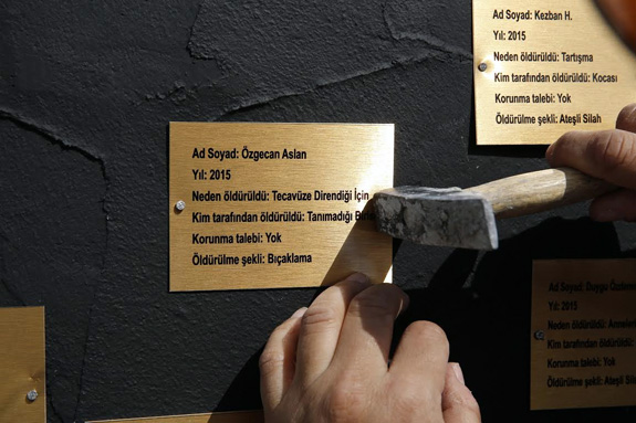 Alsancak Vapur İskelesi önünde yükselen duvar üzerine 2008 yılından bugüne kadar öldürülen bin 169 kadının adının yer aldığı bakır plakalar çakıldı. Yukardan bakıldığında kadın siluetini temsil eden anıt duvara monte edilen plakalar üzerine öldürülen kadınların adı ve soyadının yanı sıra hangi tarihte, kim tarafından ve ne şekilde öldürüldüğü de yer aldı. Tıpkı duvarın örülmesinde olduğu gibi plakaların çakımında da kadınlar en öndeydi. Türkiye'de kadına yönelik şiddetin boyutlarını da bir kez daha gözler önüne seren duvarı ziyaret edenler, plakaları okuyarak yaşanan acılara tanıklık etmiş oldu.