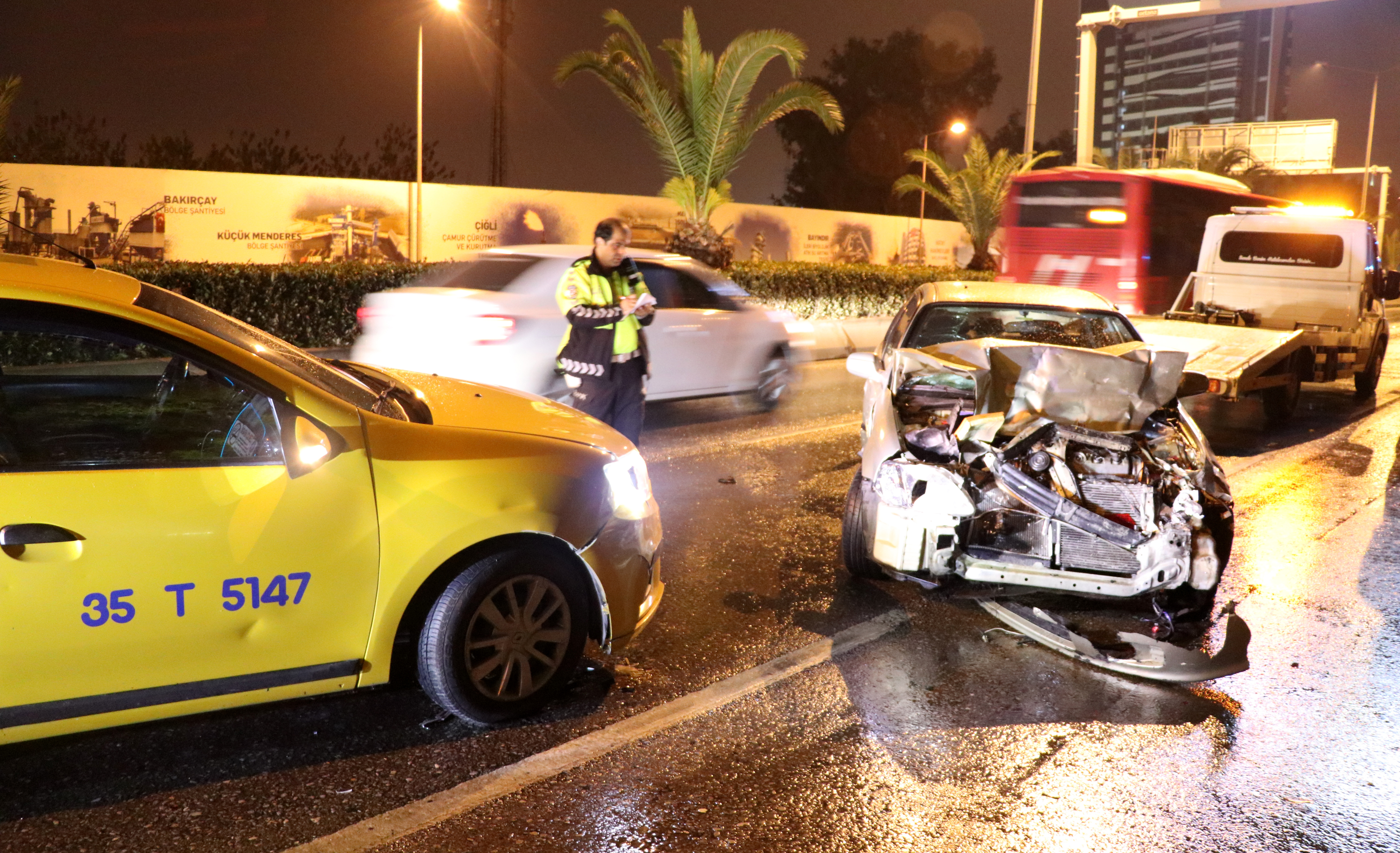 Kaza, saat 04.00 sıralarında Mürselpaşa Bulvarı Basmane yol ayrımı yakınlarında meydana geldi. Kentin birçok noktasında etkili olan kısa süreli yağış nedeniyle kayganlaşan yolda iddiaya göre, Bornova'dan Konak yönüne giden ve plakası ile sürücüsü öğrenilemeyen bir taksi Mürselpaşa Bulvarı üzerinde yolcu bırakmak için aniden durdu. Arkadan gelen Erkan V. de idaresindeki 35 T 5147 plakalı aracı ile çarpmamak için manevra yaptı. Erkan V.'nin manevrası nedeniyle hemen arkasındaki Yusuf B. idaresindeki 35 HB 0818 plakalı otomobil, Erkan V.'nin kullandığı taksiye çarptı. Bu sırada aynı yolda ilerleyen 35 T 6614 plakalı taksi, 16 CVM 93 plakalı otomobil, 35 S 95572 plakalı servis minibüsü ve 35 T 5494 plakalı taksi de art arda çarpıştı. Zincirleme kaza sonucu, araçlarda bulunan 9 kişi yaralandı.