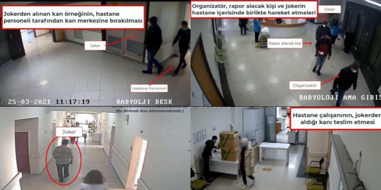 İzmir merkezli 18 ilde sahte engelli raporu çıkardıkları belirlenen, aralarında organizatör, 'joker' ve hastane çalışanlarının da olduğu 380 şüpheliye yönelik başlatılan operasyonda 51 şüpheli gözaltına alındı. Operasyon sürerken şüpheliler hastanenin güvenlik kamerası tarafından kaydedildi. Görüntülerde; ilk olayda bir jokerin kan verme birimi yerine hastane çalışanından yardım alarak 5'inci katta sadece yatan hastaların olduğu birime giderek kan verdiği yer aldı. Diğer görüntüde ise iki hasta çalışanının önden gittiği, arkalarından gelen iki şüphelinin de onları elinde tüplerle takip ettiği yer aldı. Görüntülerin devamında da organizatör, rapor alacak kişi ve jokerin hastane içinde birlikte hareket ettikleri, jokerin rapor alacak kişi yerine idrar örneği bıraktığı da kamera kayıtlarına yansıdı. Jokerden alınan kan örneğinin hastane personelince kan merkezine bırakıldığı, hastane çalışanının jokerden aldığı kanı teslim ettiği de görüntülerde yer aldı. (AA, DHA)