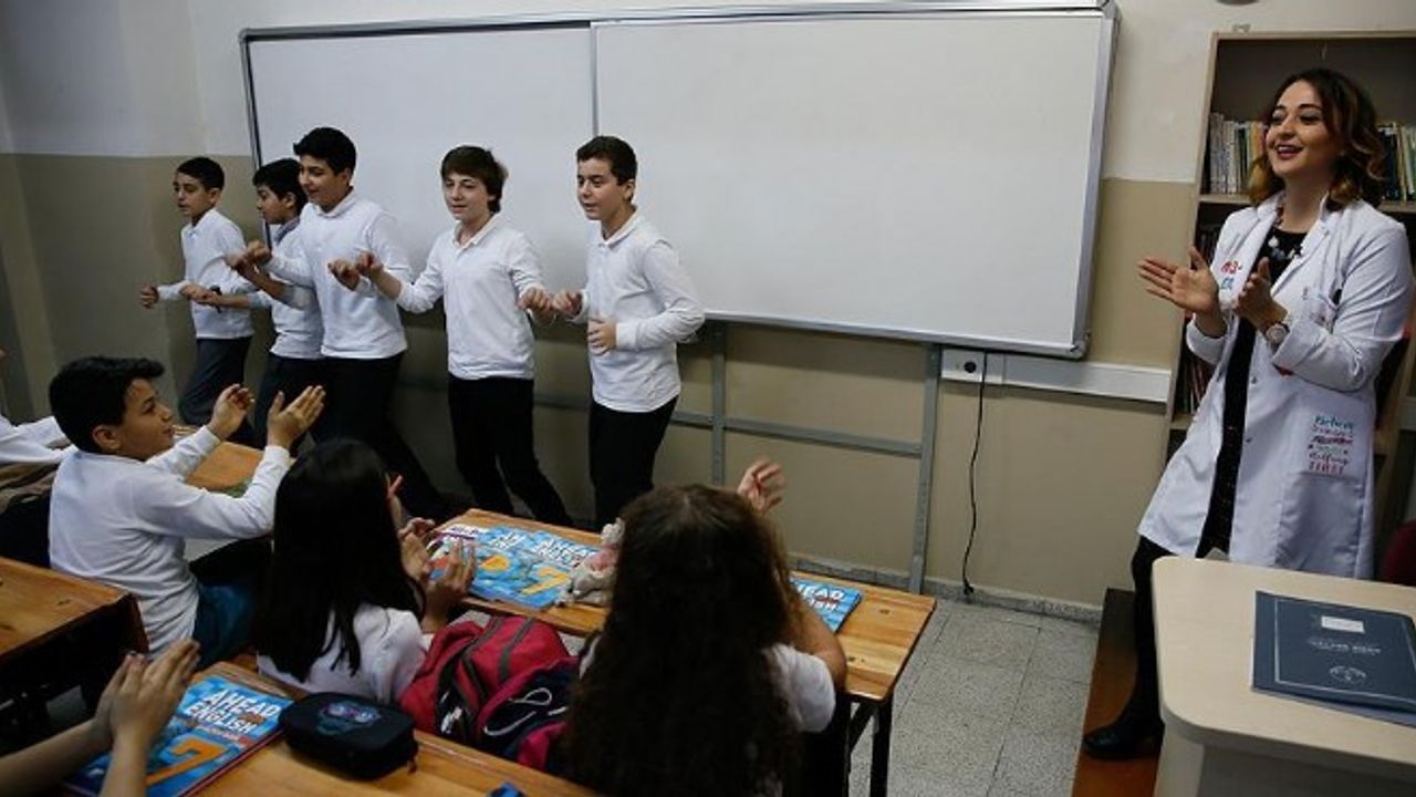 İzmir'de bir ortaokulda görev yapan İngilizce öğretmeni, öğrencilerin derse ilgisini artırmak için uyguladığı ilginç yöntemlerle dikkati çekiyor.