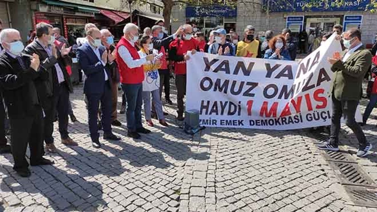 İşçi bayramı öncesinde hükümete çağrıda bulunan ve Emek ve Demokrasi Güçleri adına basın açıklamasını okuyan DİSK Ege Bölge Temsilcisi Memiş Sarı, İzmir'de 1 Mayıs'ın sadece tek bir şart ile kutlamaktan vazgeçebileceklerini belirtti.