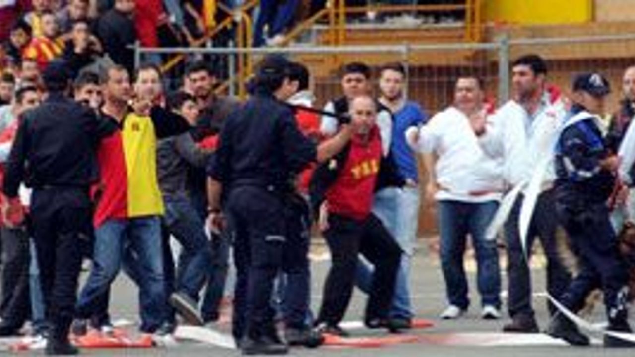İZMİR - Karşılaşma için Atatürk Stadı'nın Mersinli tarafındaki kale arkası tribünde 4200 kişilik kontenjan ayrılan sarı kırmızılı taraftarlar, saat 13.00'ten itibaren Bölge Metro İstasyonu'nda toplandı. Saat 15.00'e kadar stada alınması planlanan Göztepeli taraftarlar, çevik kuvvet ekipleri ve 4 zırhlı aracın kontrolünde saat 15.30'da stada ulaşabildi.