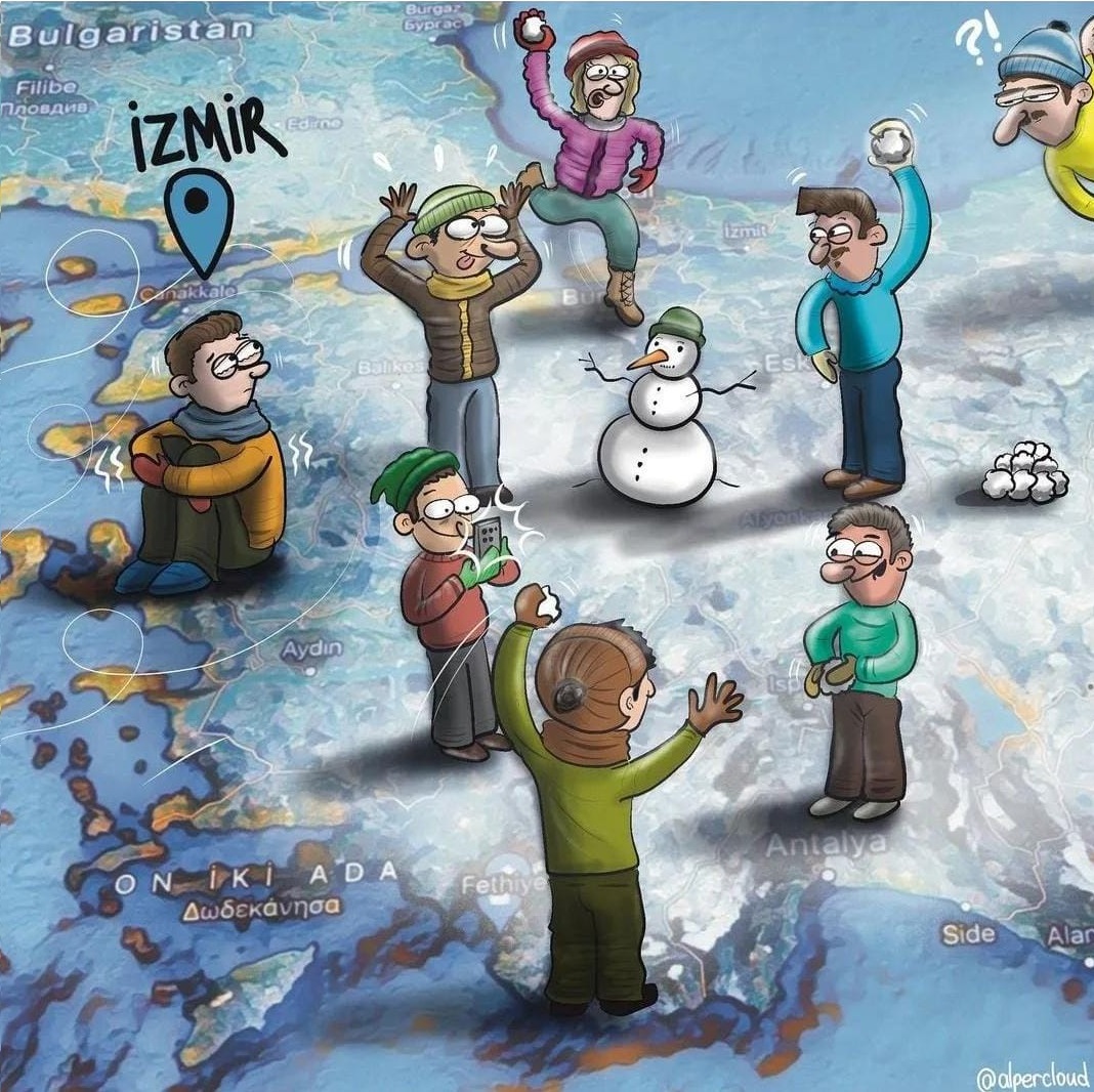 İzmir' de meteorolojik gözlemlerin 1938 yılından beri yapıldığını aktaran yetkililer, o gözlemler sonucunda 'İzmir tarihinde 1945 yılında yerde 32 santimetre ölçülmüş. Yani bu demek oluyor ki geçmişte de biz kar yağışı almışız... Tabii artık bu yükseklikte bir kar kalınlığı küresel ısınma ve iklim değişikliği nedeniyle İzmir merkezde mümkün olamaz ancak bu dinamik bir yapıdır ve sürprizlere her zaman açıktır. Yine yağış beklenebilir. Haftaya tekrar bir soğuk hava geliyor. Biz takipçisi olacağız' ifadelerini aktardı.