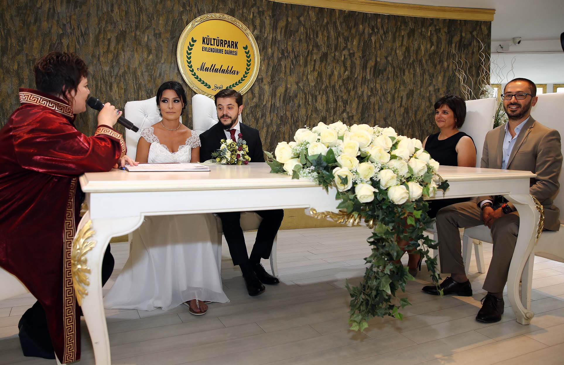 İzmir'in hemen her semtinden evlenmek isteyen çiftler bu yıl da dünyaevine girmek için Konak Belediyesi'nin Kültürpark içinde hizmet veren Kültürpark Evlendirme Dairesi'ne akın etti. Bir ömür sürecek birlikteliğe 'Evet' demek için yola çıkan çiftler, nikahlarını kentin merkezinde, yemyeşil bir ortamın içinde bulunan Fuar Evlendirme Dairesi'nde kıydırmak için sıraya giriyor. Yılın başından bu yana geçen 7 aylık sürede toplam 900 nikahın kıyıldığı Fuar Evlendirme Dairesi'nde bu sayının yıl sonuna kadar 2 bin'i bulması bekleniyor. Özellikle yaz aylarında artan ilgi nedeniyle günde 35 nikahın kıyıldığı zamanlar dahi oluyor.