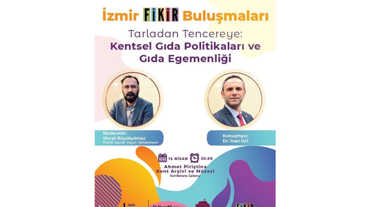 İzmir Büyükşehir Belediyesi’nin ‘İzmir FİKİR Buluşmaları’ dizisinin yeni oturumu, 15 Nisan Çarşamba günü saat 20.00’de Ahmet Piriştina Kent Arşivi ve Müzesi Konferans Salonu’nda gerçekleştirilecek. Dr. İnan İzci’nin konuşmacı, FİKİR Genel Yayın Yönetmeni Murat Büyükyılmaz’ın moderatör olarak yer alacağı buluşmada, kentsel gıda politikaları ve gıda egemenliği başlığı etrafında İzmir’in güncel ihtiyaçları, imkânları ve tartışma alanları değerlendirilecek. 17 Nisan Uluslararası Çiftçi Mücadeleleri Günü’nün açtığı tarihsel ve siyasal çerçeveden hareket eden oturum, tarımı yalnızca ekonomik bir sektör olarak değil emek, yaşam, gıda hakkı, ekoloji ve demokrasi meselesi olarak birlikte düşünmeyi amaçlıyor. Bu yönüyle buluşma, çiftçi mücadelelerinin dünyadaki ve Türkiye’deki birikimini İzmir’in güncel gerçekliğiyle buluşturmayı hedefliyor.