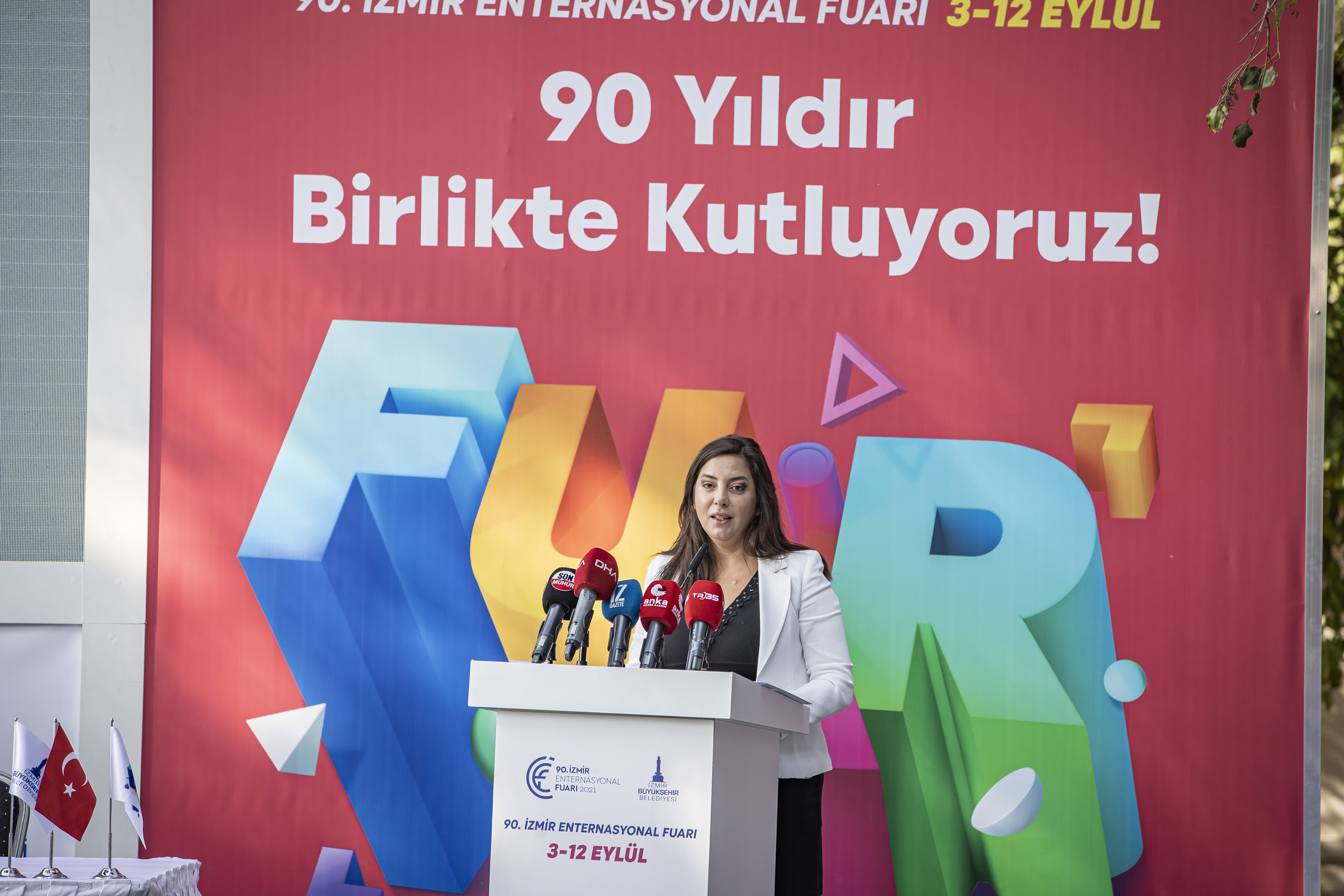90. İzmir Enternasyonal Fuarı Basın Toplantısına, ev sahibi İzmir Büyükşehir Belediye Başkanı Tunç Soyer'in yanı sıra , Folkart Yönetim Kurulu Başkanı Mesut Sancak, Migros Kuzey Ege Direktörü Güneş Fırıldak ve İZFAŞ Genel Müdürü Canan Karaosmanoğlu Alıcı katıldı.