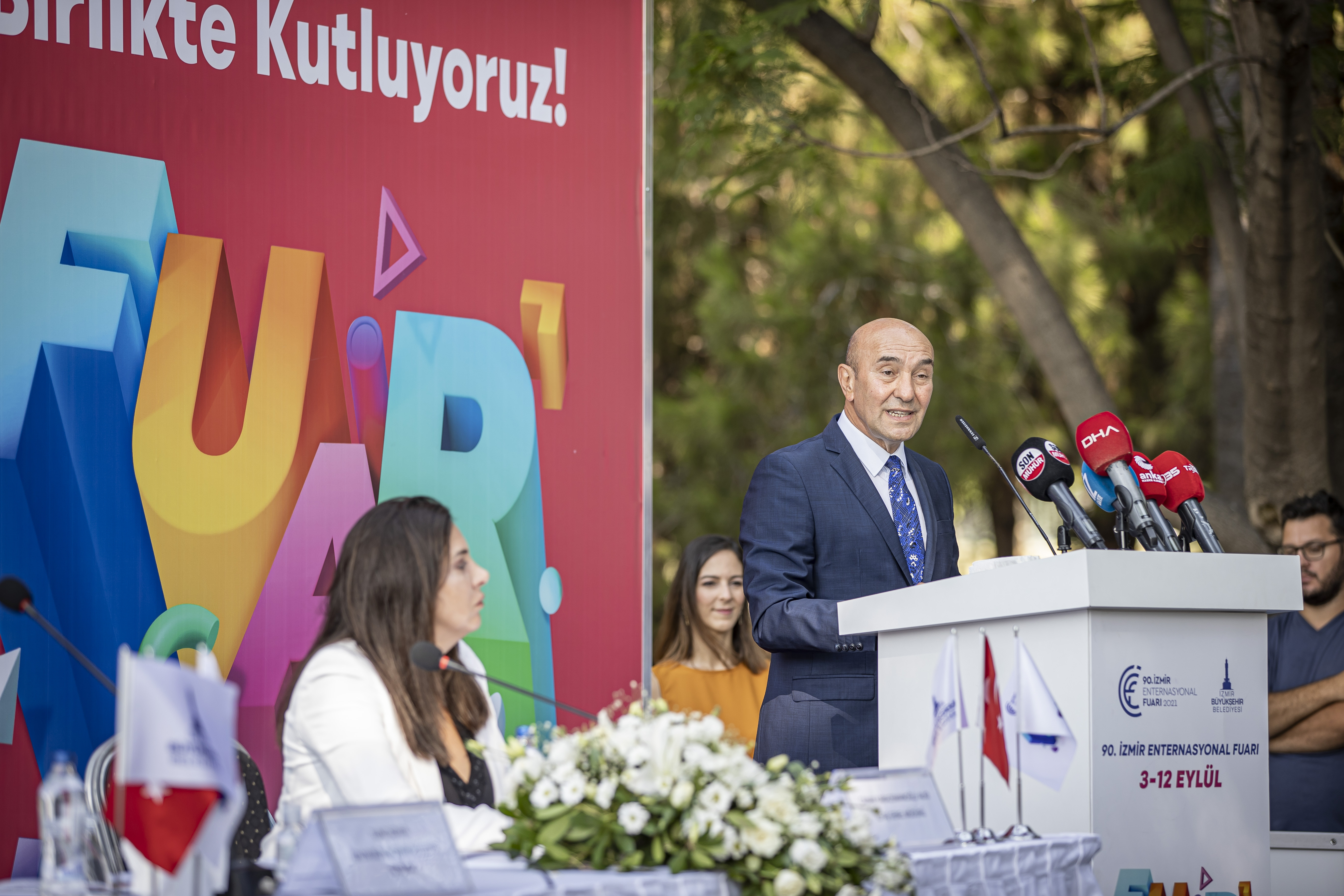 Basın toplantısında açıklamalarda bulunan İzmir Büyükşehir Belediye Başkanı Tunç Soyer ise, 'Ulu önderimiz Mustafa Kemal Atatürk tarafından Türkiye'nin gelecek planlarının hayata geçirilmesi amacıyla İEF, 90 yıldır İzmir ve Türkiye'nin gözbebeği. İEF, Türkiye'yi dünyaya bağlayan bir köprü. İEF yalnıza bir fuar değil şehrimize bırakılmış bir kültür mirası. İEF'nin geleneğinin İzmir'de doğmuş ve 90 yıldır İzmir'de yaşıyor olması tesadüf değil. İzmir tüm tarihi boyunca Anadolu'nun dünya ile bağlantı kuran ve büyüten öncü bir kültür ve ticaret limanı olmuştur. Dünya ile kurduğu güçlü bağlar sayesinde gelişip değişmiş, kendisini dönüştürmüş ve bunun sonucunda Anadolu'ya ilham veren çok sayıda yeniliğe de ilham olmuş. Şöyle de denebilir; İzmir'in misyonu, İzmir'in yüzölçümünden büyüktür. Gazi Mustafa Kemal Atatürk'ün, İEF'nın temellerini sırf İktisat Kongresinin gerçekleştirmek için İzmir'i seçmiş olmasının ana nedeni de şehrin bu köklü geçmişidir. Biz Cumhuriyet'in şehrimize verdiği bu asil görevin farkındayız ve fuarı zamana uydurmak için var gücümüzle çalışıyoruz. Çünkü biliyoruz ki İEF büyüdükçe tüm Türkiye'nin dünyayla bağları da büyüyüp gelişecek. İş dünyasında bir tartışma var. Türkiye'den global marka çıkar mı? Oysa İEF, belki de Cumhuriyetin ilk uluslararası markası. Hem de 90 yaşında. İEF, herhangi bir fuar organizasyonu değil. İEF, Türkiye'nin dünyadaki kültürel ve teknolojik gelişmelerle ve geleceğin dünyası ile İzmirlilerin yıl boyunca coşkuyla beklediği bir buluşma noktası. Her yıl Kültürpark'ta buluşmanın heyecanının birlikte yaşıyoruz. Geleceği İzmir'de birlikte kuruyoruz temasıyla açıyoruz' diye konuştu.