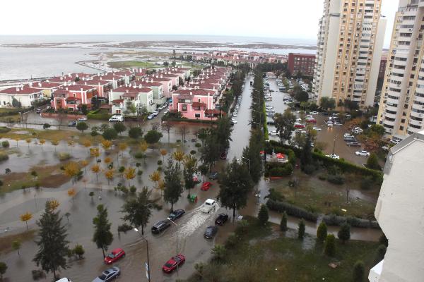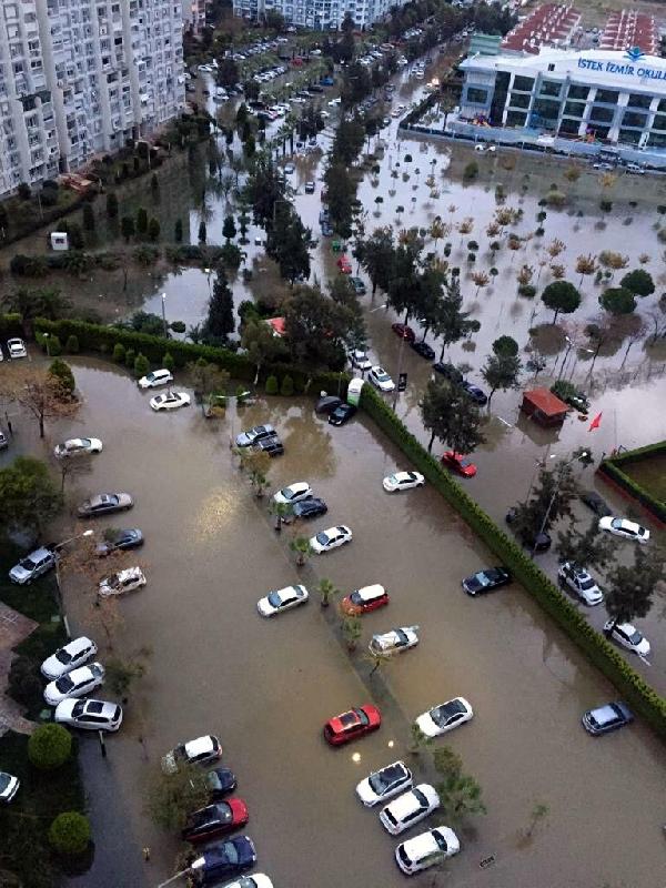İzmir'de saat 03.00 sıralarında başlayan etkili yağmurda birçok yeri su bastı. Yağmur suyu taşıma kanallarının tıkalı olması nedeniyle Karşıyaka ilçesinin Mavişehir Mahallesi'nde, lodosla birlikte denize yakın sitelerdeki apartmanların otoparkları, bahçeleri sular altında kaldı. Araçlar yarıya kadar suya battı.