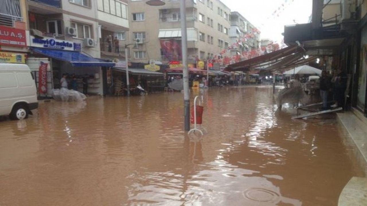 Dolu yağışının da görüldüğü Buca ve Karabağlar ilçelerinde de bazı caddeler dereye döndü. Ev ve iş yerlerini basan su, vatandaşların çabasıyla tahliye edilmeye çalışıldı.