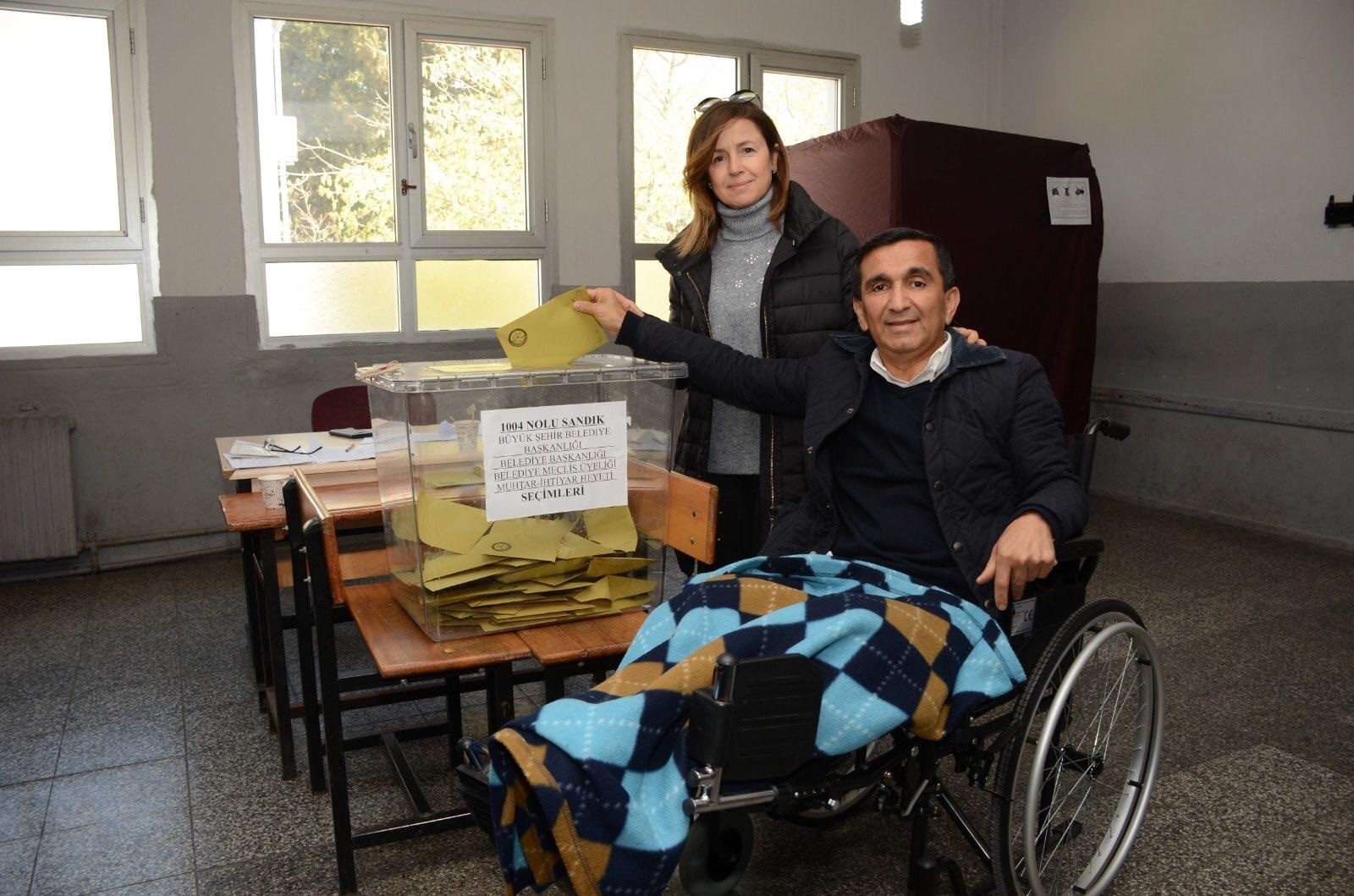 Cumhur İttifakı'nın Selçuk Adayı Osman Başterzi, oyunu kullanmak için sandık başına gitti. Uğradığı silahlı saldırı sonucu ayağı alçıda olan Başterzi, tekerlekli sandalye ile okula geldi ve oyunu kullandı. Başterzi, seçim sonuçlarının İzmir'e ve Türkiye'ye hayırlı olmasını diledi.