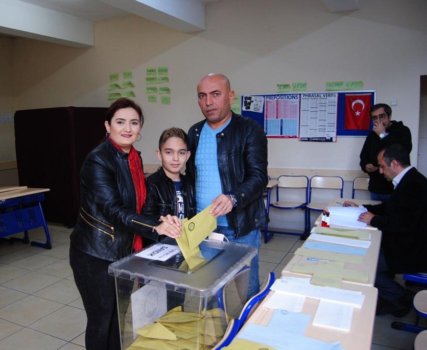 Aynı okulda oy kullanmaya gelen vatandaşlar Arslan'a ilgi göstererek, onunla fotoğraf çektirdiler.