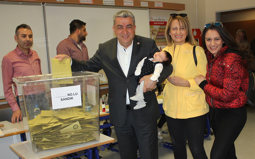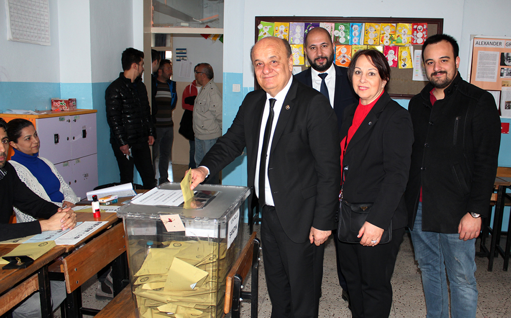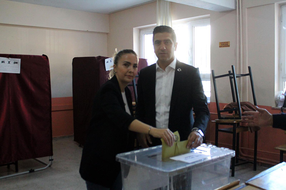 Milliyetçi Hareket Partisi (MHP) İzmir İl Başkanı Veysel Şahin eşi ile birlikte sabah saatlerinde oyunu kullandı.