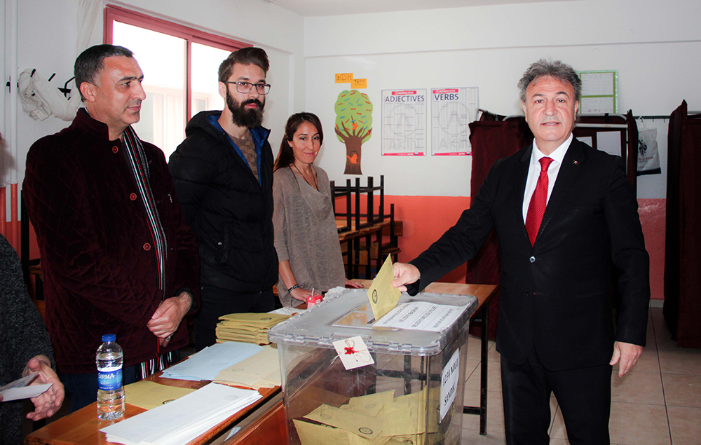 Oyunu Bornova Ali Suavi İlkokulu 1358 Nolu sandıkta kullanan Atila Sertel, 'Ülkemiz ve milletimiz ve İzmirimiz için hayırlı olsun.