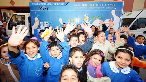 Çocuk gelişimini olumsuz etkileyen yetersiz süt tüketiminin, sonraki yıllarda kemik erimesi başta olmak üzere çeşitli hastalıklara neden olduğundan hareketle yola çıkan İzmir Büyükşehir Belediyesi, 197 okulda 166 binden fazla öğrenciye süt dağıtıyor. 2006 yılından bu yana süt dağıtımı yapan, 2009 yılından itibaren de süt alımlarını üretici kooperatifi aracılığıyla gerçekleştiren Büyükşehir Belediyesi, bu projesiyle Türkiye'ye örnek gösteriliyor.