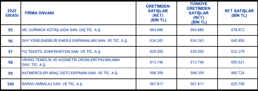 'Üretimden satışlara' göre 100 büyük sanayi kuruluşu 2022 yılı sıralamasında, iki yıldır zirveye kurulan Star Rafineri A.Ş'yi bu yıl da liderliğini sürdürdüğü görüldü. Star Rafineri A.Ş'yi ise TÜPRAŞ ve Petkim A.Ş takip etti.