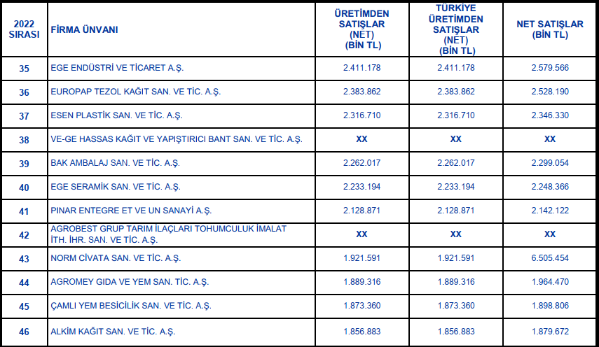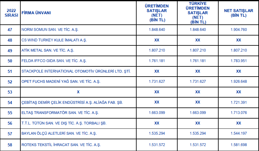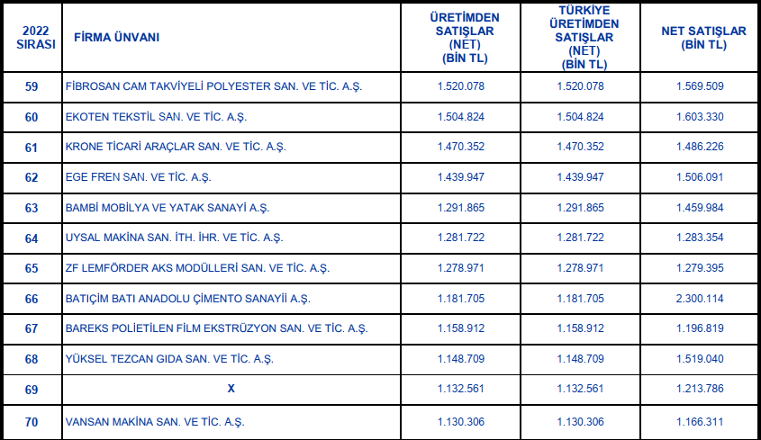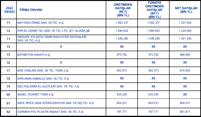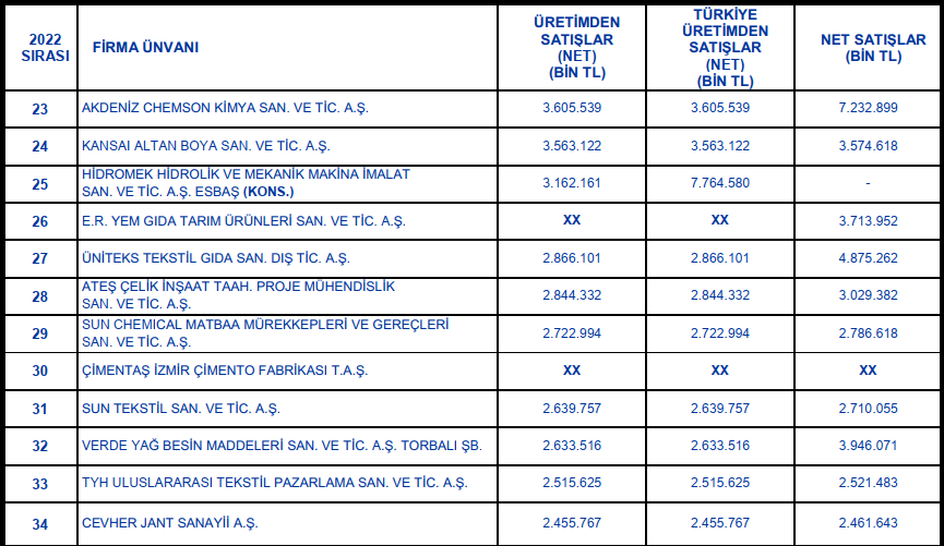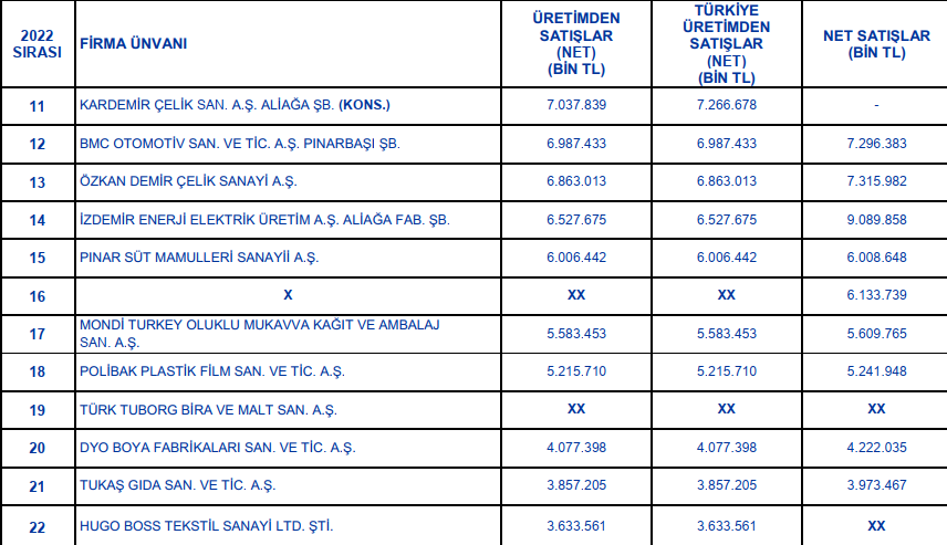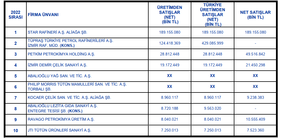 İlk 10'da sırasıyla PETKİM'in ardından; İzmir Demir Çelik, Abalıoğlu Yağ Sanayi, Philsa Philip Morris, Kocaer Haddecilik, Abalıoğlu Lezita, Ravago Petro Kimya ve JTI Tütün aldı.
