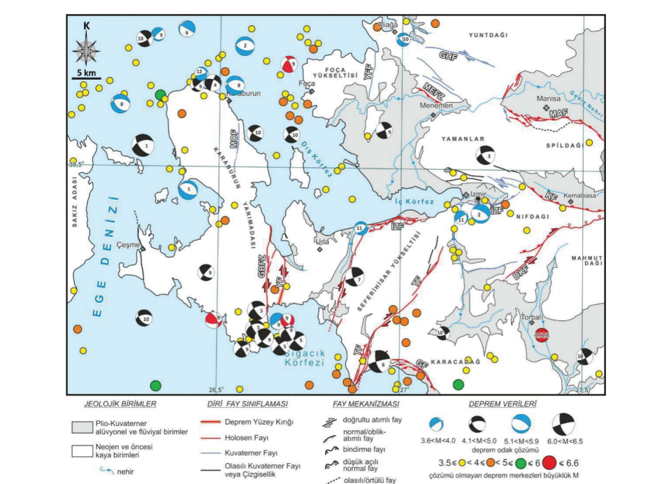 Kentte 44 adet deprem gözlem istasyonu bulunduğunun belirtildiği raporda İzmir sınırlarının içinde 6 ile 7.2 büyüklüğünde deprem üretme potansiyeline sahip 21 fayın olduğu ve bu fayların yanı sıra Ege Denizi altında da çok sayıda diri fay bulunduğu bilgisi verildi.