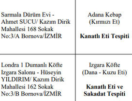 Bakanlığın teşhir listesinde bulunan firmaların içinde sadece Türkiye'ye değil Avrupa ülkelerine ihracat yapan, Kemalpaşa'da bulunan Pınar Entegre Et ve Un Sanayi San. A.Ş., Pınar'ın ürettiği 'Uzun Sosis Ekonomik Paket'inde baş(kelle) eti tespit edilirken Menemen'de Mes-Et markası olarak bilinen ve köftesinde domuz eti tespit edilmesi dikkat çekti.