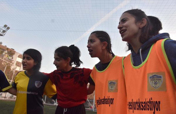 Yeşilyurtspor'un ikinci aileleri olduğunu söyleyen genç sporcular, futbola devam etmek için seslerini duyurmak istiyor. 4 yıldır bu takımda top koşturduğunu anlatan 17 yaşındaki Rabia Öncü, 'Futbol benim için bir zevk. Çalışmalarımız güzel gidiyor. Burası ikinci ailemiz. Futbolu hobi olarak yapıyorum. Ama üniversitede beden eğitimi ya da antrenörlük düşünüyorum. Amcam futbolcuydu. Onun sayesinde başladım. Çevreden olumlu tepkiler aldım. Ama daha fazla destek bekliyoruz. Maçlara gitmek istiyoruz. 3'üncü ligin atmosferi çok güzel. Maça çıkarken çok heyecanlanıyorum' dedi. Kadın futboluyla ilgili ön yargılara tepki gösteren Eylül Selçuk (11), 'Ben arkadaşımın yardımıyla futbola başladım. Ondan duydum ve katıldım. Birkaç ay önce geldim. Kızların futbolla ilgili yargıları var. Futbol erkek işidir, deniyor. Ama bence isteyen herkes futbolu başarabilir. Ben her bölümde oynayabiliyorum. Forvet, orta saha, sağ bek, sol bek hepsini oynuyorum' diye konuştu. Futbola babasının yardımıyla başladığını söyleyen Aleyna Esen (12) de 'Ben babamın maçına gidiyordum. Davut hoca benim şutlarımı gördü ve başladım. İki gün buraya geliyorum. Bazen yoruluyorum ama çok keyif alıyorum. İleride de futbol oynamak istiyorum' dedi.