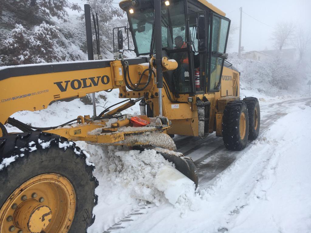 İzmir Büyükşehir Belediyesi ekipleri, yoğun kar yağışı nedeniyle yolları kapanan Kiraz ve Kemalpaşa ilçelerinde önlemler aldı. Büyükşehir Belediyesi'nin sosyal medya hesabından yapılan konuyla ilgili paylaşımda, 'Yoğun kar yağışı nedeniyle eğitime bir günlük ara verilen Kiraz ve Kemalpaşa ilçelerimizin yüksek köylerinde kapanan yollar ekiplerimiz tarafından açılmıştır. Yaşanabilecek tüm olumsuzluklara karşı ekiplerimiz teyakkuz halindedir' ifadeleri kullanıldı.
