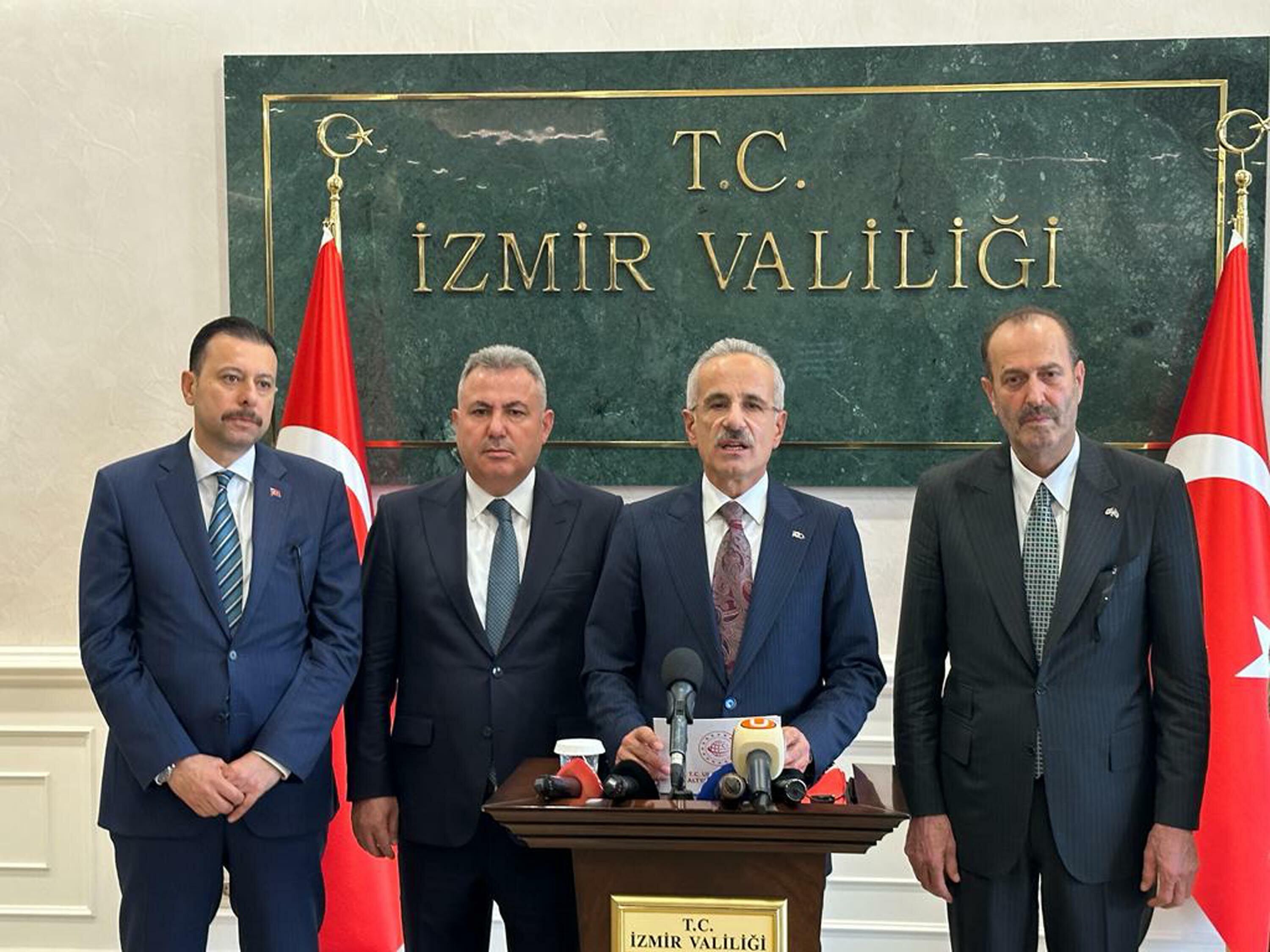 İzmifr Valiliği'ne ziyarette bulunan Ulaştırma ve Altyapı Bakanı Abdulkadir Uraloğlu burada açıklamalarda bulundu. Bakan Uraloğlu, 'İzmir, ülkemizin kültürel zenginliklerini ve ekonomik dinamizmini temsil eden çok önemli bir şehir. Tekstil, petrokimya, demir-çelik, otomotiv, çimento, gıda, yem sanayi gibi faaliyetleri ile Türkiye ekonomisinin lokomotif kentlerinden biri. İzmir geçmişten bugüne Türkiye'nin batı dünyasına açılan en önemli kapılarından biri. Bu nedenle de İzmir'in ulaşım ve iletişim altyapısının gelişmesine ayrı bir özen gösteriyoruz. Son 21 yılda İzmir'in ulaşım ve iletişim altyapısına 122 milyar 355 milyon lira yatırım gerçekleştirdik. Bölünmüş yol uzunluğunu 430 kilometreden 966 kilometreye, bitümlü sıcak karışım kaplamalı yol uzunluğunu ise 367 kilometreden 985 kilometreye çıkardık. Toplam uzunluğu 55,5 km olan İzmir Çevre Yolu'nu etaplar halinde tamamlayarak ve Konak Tüneli'ni açarak İzmirlilere şehir içi trafiğinde rahat bir nefes aldırdık. İzmir-İstanbul Otoyolu'nu tamamlayarak yaklaşık 8,5 saat süren yolculuk süresini 3,5 saate indirdik. Menemen-Aliağa-Çandarlı Otoyolu'nu açtık. Bu otoyol projemiz kapsamında inşa ettiğimiz çelik arkeolojik köprü, Neonteikhos Antik Kenti'ne giden yolun ve çevresindeki tarihi eserlerin korunmasını sağlaması yönünden dünyada ilk ve tek uygulama örneği oldu. Bu atılımda da yine Bakanlığımızın imzası olmasından gurur duyuyoruz' diye konuştu.
