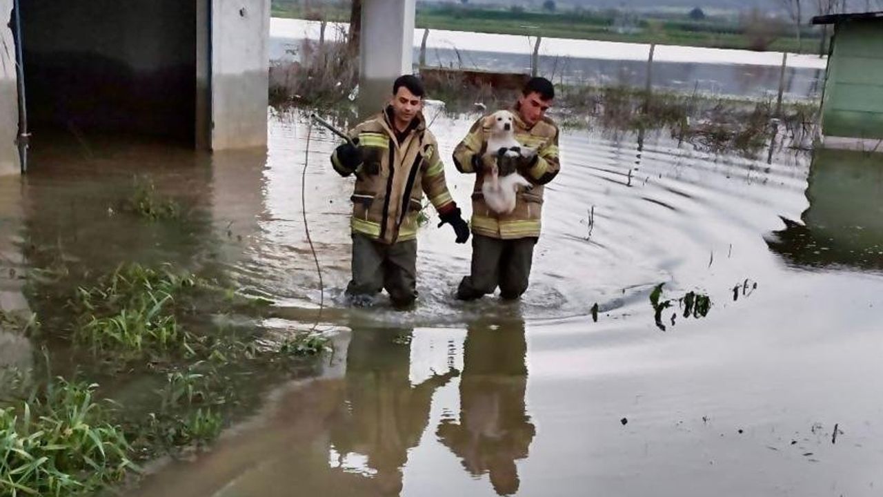 İzmir’in Torbalı ilçesine bağlı Yeniköy Mahallesi’nde, inşaat hâlindeki üç katlı bir binaya sığınan bir köpek, çevresini saran su nedeniyle mahsur kaldı. Su seviyesinin hızla yükselmesiyle kaçacak yeri kalmayan hayvan, binanın üçüncü katına sığındı. İhbar üzerine İzmir Büyükşehir Belediyesi İtfaiye Dairesi Başkanlığı ekipleri kısa sürede bölgeye ulaştı. Zamanla yarışan ekipler, yüksek su seviyesine rağmen dikkatli ve kontrollü bir çalışma yürüttü. Korku ve yalnızlık içinde bekleyen köpeğe kısa sürede ulaşıldı. İlk anda tedirginlik yaşayan hayvan, itfaiyecilerin güven verici yaklaşımı sayesinde sakinleşti. Kucaklanarak güvenli alana çıkarılan köpek yeniden özgürlüğüne kavuştu.