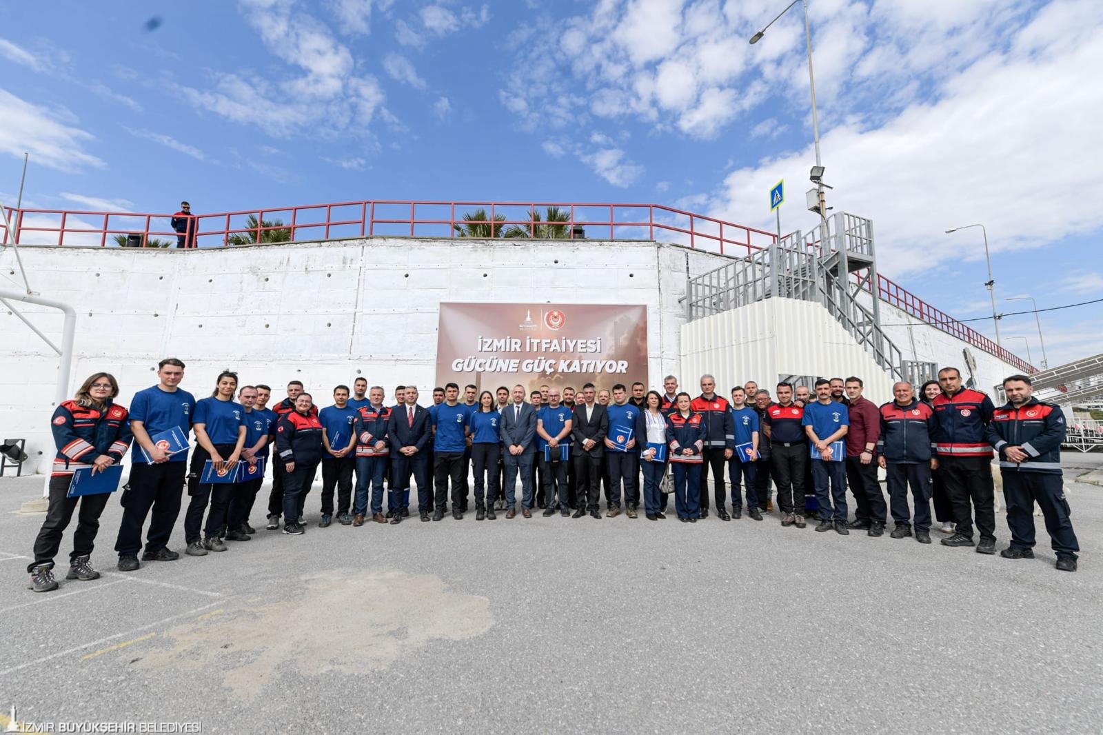 Programın ilk aşamasını başarıyla tamamlayan ifaiyeciler için Eğitim Şube Müdürlüğü’nde sertifika töreni düzenlendi. Törene İzmir Büyükşehir Belediyesi Genel Sekreter Yardımcısı İsmail Mutaf, İtfaiye Dairesi Başkan Vekili Ahmet Karaman, itfaiye şube müdürleri ve eğitmenler de katıldı. Törende konuşan İsmail Mutaf, İzmir Büyükşehir Belediye Başkanı Dr. Cemil Tugay’ın, itfaiye teşkilatına çok değer verdiğini söyledi. 2025 yaz aylarında kentin dört bir yanında çıkan orman yangınlarını hatırlattı. İtfaiyenin çok büyük yangınlara başarıyla müdahale ettiğini söyleyen İsmail Mutaf, “Sahada çalışan ekiplerimiz büyük bir özveriyle bu yangınlarla başa çıktı. Kış aylarında da yoğun yağışlar nedeniyle itfaiye teşkilatımız sürekli sahadaydı” dedi.