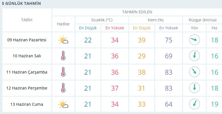 Çarşamba günü de termometrelerin 36’yı göstermesi öngörülürken, perşembe günü hava sıcaklığı 37’ye çıkacak.