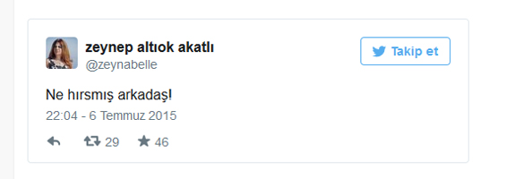 Akatlı, attığı tweet'te 'Ne hırsmış arkadaş' yazdı.