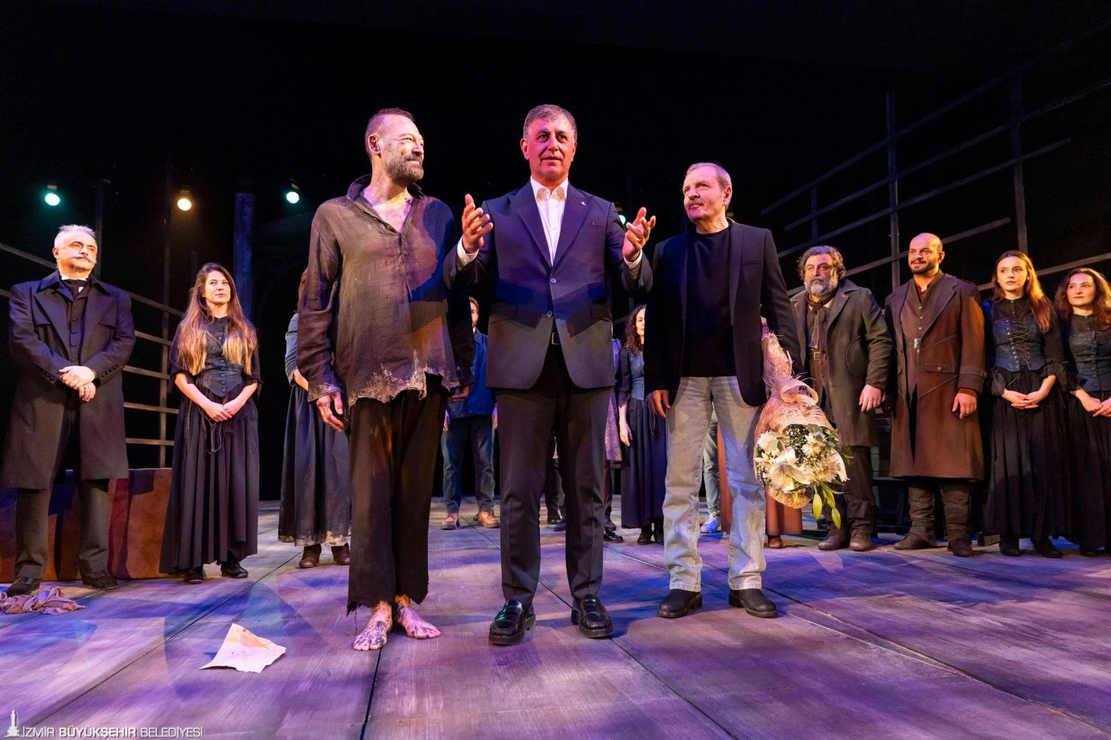 Oyunun sonunda sahneye çıkarak oyuncuları tebrik eden İzmir Büyükşehir Belediye Başkanı Dr. Cemil Tugay, “Bir buçuk yıllık emeğin ardından, bu gördüğünüz muhteşem tablo ortaya çıktı. Biz her zaman İzmir’in ve Türkiye’nin çok iyi şeyler hak ettiğine inanıyoruz. Onlara iyi şeyler verme çabasının karşılık bulacağına inanan insanlarız. Ben bu gece burada iki kimlikle çok mutlu oldum. Biri seyirci olarak, diğeri de belediye başkanı olarak büyük gurur duydum. Gelecek günlerin güzel olduğuna inanıyorum. Bu ekibi yürekten kutluyorum. Oyuncuları inanılmaz bir hayranlıkla seyrettim. Biliyorum çok güzel çalışmalar ortaya konulacak. Yeter ki siz yanımızda olun. Yeter ki bu güzel insanlar hak ettikleri değeri bulsun. Hepinize emeklerinizden dolayı teşekkür ediyorum” dedi.
