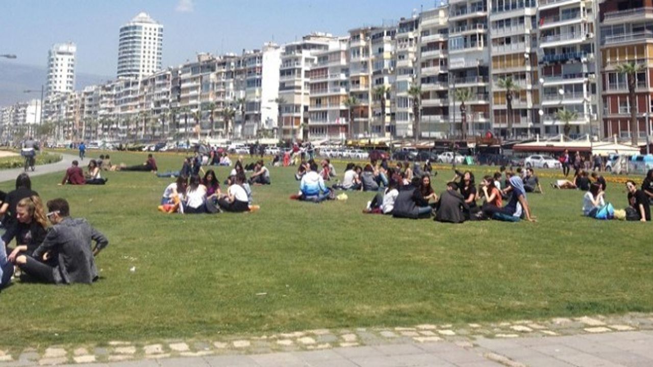 İzmir'de hafta başında hissedilen serin hava hafta sonuna doğru yerini güneşe bıraktı. Hava sıcaklığının 28 dereceye yükselmesiyle İzmirliler, baharın ortasında yazı yaşadı. Kordon çimlerinde oturanlar güneş eşliğinde bol kahkahalı koyu sahbetin tadını çıkardı. Dokuz Eylül Üniversitesi Yabancı Diller bölümünde okuyan Ganalı iki öğrencinin cep telefonlarından Bülent Ersoy'un şarkılarını dinlemesi dikkat çekti.
