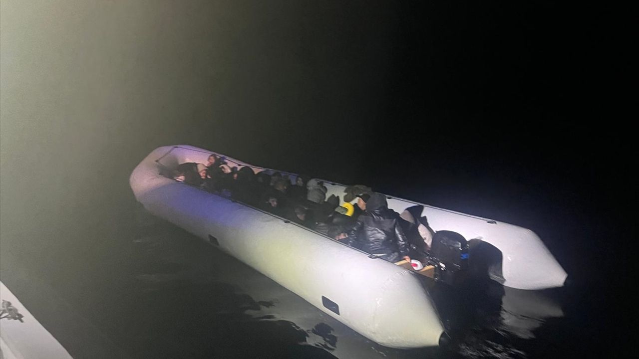 Ekiplerce durdurulan lastik bottaki 19'u çocuk 42 düzensiz göçmen yakalandı.