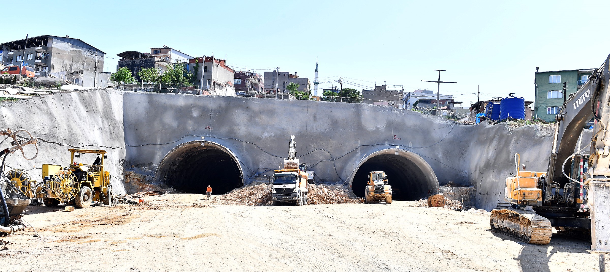 Kent içi trafiği rahatlatmak için yeni projeler geliştiren İzmir Büyükşehir Belediyesi'nin Buca ile Bornova arasında açacağı 'İzmir'in en uzun karayolu tünelindeki' çalışmalar soluksuz devam ediyor. Buca'daki Homeros Bulvarı'nı Bornova'daki Otogar'a bağlayacak 183 milyon liralık dev projenin çift tüp tünel inşaatının en zorlu bölgesi geçiliyor. İlk 150 metresi kritik önem taşıyan tünelde, kazı çalışması büyük bir titizlikle ama hız kesmeden sürdürülüyor. Tünelin bir tüpünde 50 metre diğer tüpünde ise 30 metreilerleyen ekipler, zemin analizi için ise 26 adet sondaj kuyusu açıldı