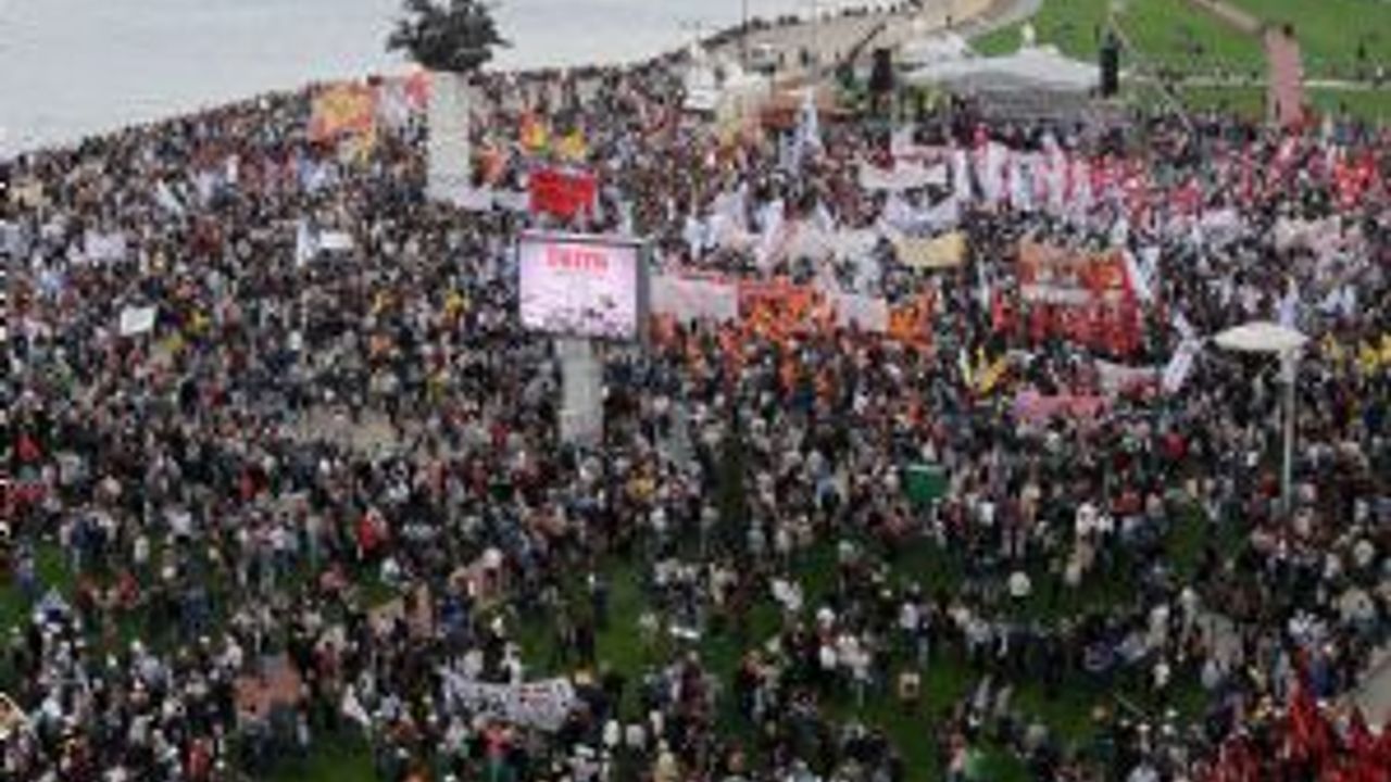 Kentte kutlamaların adresi Gündoğdu Meydanı… Valilikten 09.00-16.00 arası izin alan işçi ve memur sendikaları iki koldan alana yürüyüşe geçti.