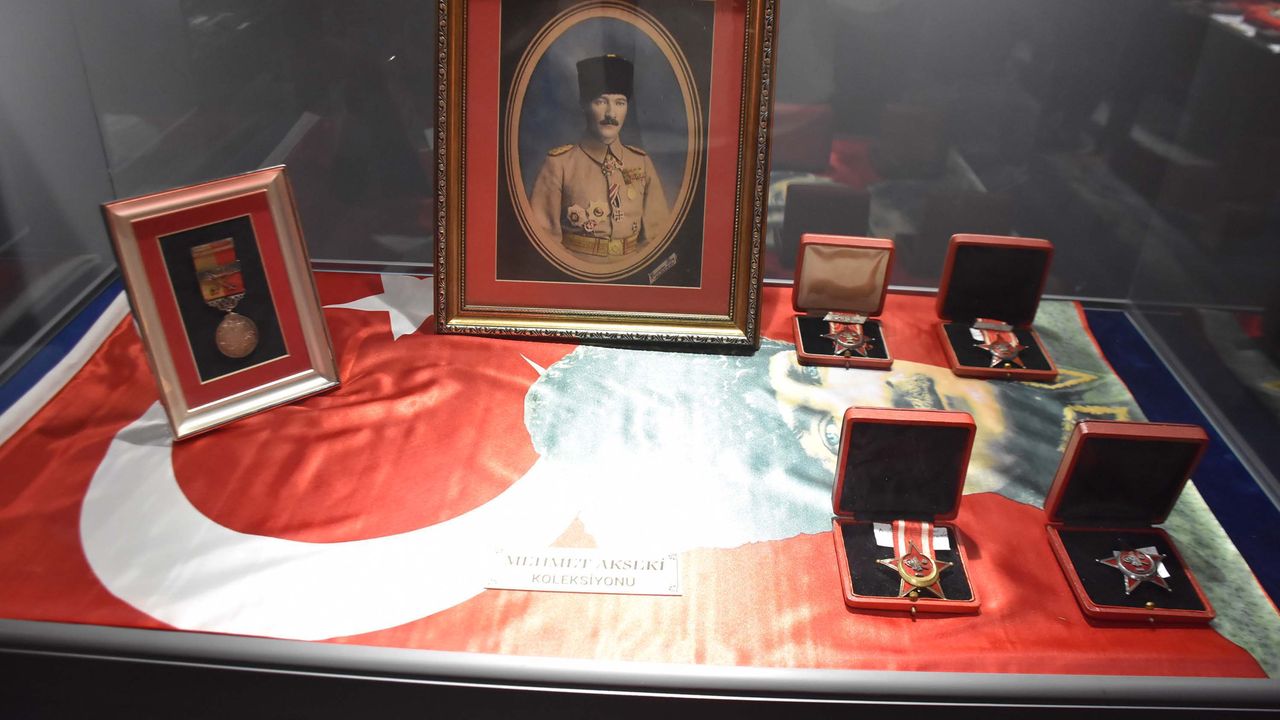 Koleksiyonerlerden Mehmet Akseki, sergiye Çanakkale deniz zaferinin kahramanlarından biri olarak kabul edilen Yüzbaşı Hakkı Efendi'nin orijinal kimlik belgesini getirdiğini belirtip, "8 Mart'ta mayınları döküyor. 18 Mart'ta mayınlar patlıyor ve 3 tane İngiliz gemisi batıyor. Mayınları döken Hakkı kaptanın orijinal hüviyetini bu sergiye getirdim. Ankara'daki müzayededen 20 yıl önce almıştım. 2010'da Atatürk Kültür Merkezi'nde sergilenmişti. Burada yeniden ziyaretçilerle buluştu" dedi.