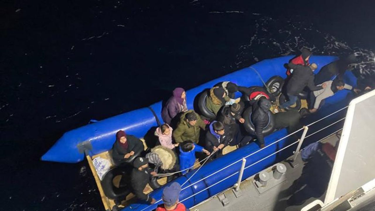 Ekiplerce durdurulan lastik bottaki 10'u çocuk 29 düzensiz göçmen yakalanarak karaya çıkarıldı.