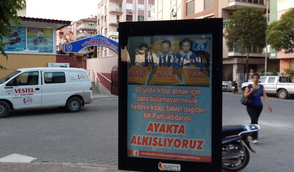 İzmir'de AK Parti Teşkilatı'ndan bir belediyeden CHP'ye 'Alkışlıyoruz' kontrası geldi. Ödemiş İlçe Teşkilatı kentin çeşitli yerleri, otobüs durakları ve metro istasyonlarındaki bilboardlara 13 yıllık iktidarları döneminde gerçekleşen projelerden örnekler vererek 'AK Parti iktidarını ayakta alkışlıyoruz' yazılı pankartlar astı.