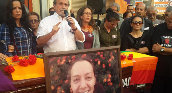İzmir'deki ilk tören de Halkevleri Yöneticisi Berna Koç için yapıldı. Koç'un cenazesi Konak'taki Halkevleri binası önüne getirildi.